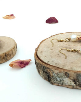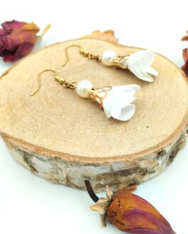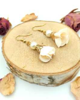 - Kolczyki 3cm "Perła Magnolii", na biglu ze stali nierdzewnej, pozłacanej.