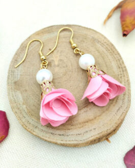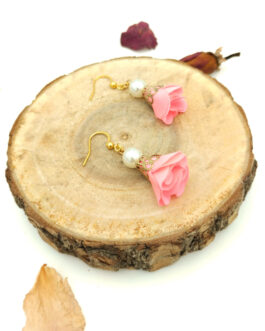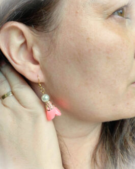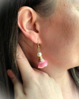 - Kolczyki 3cm "Różowa Perła", na biglu ze stali nierdzewnej, pozłacanej.