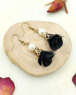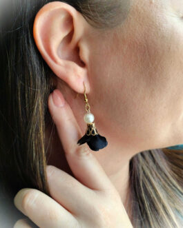 - Kolczyki 3 cm „Czarna Perła”, na biglu ze stali nierdzewnej, pozłacanej.
