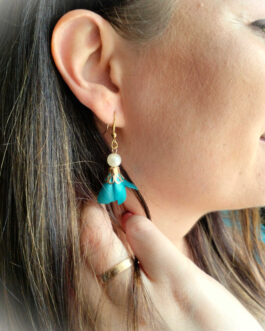 - Kolczyki 3 cm „Turkusowa Perła”, na biglu ze stali nierdzewnej, pozłacanej.