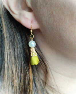 - Kolczyki "Groszkowa Perła" w kolorze zielonkawym na biglu ze stali nierdzewnej, pozłacanej.