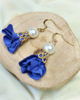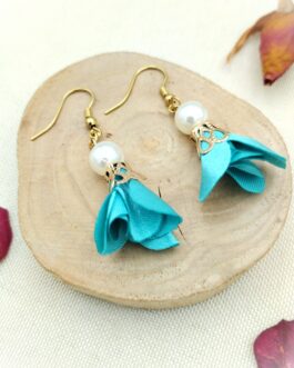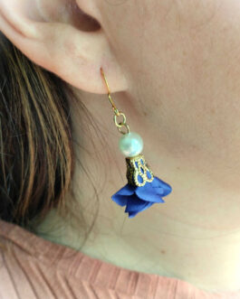 - Kolczyki 3 cm "Niebieska Perła", na biglu ze stali nierdzewnej, pozłacanej.