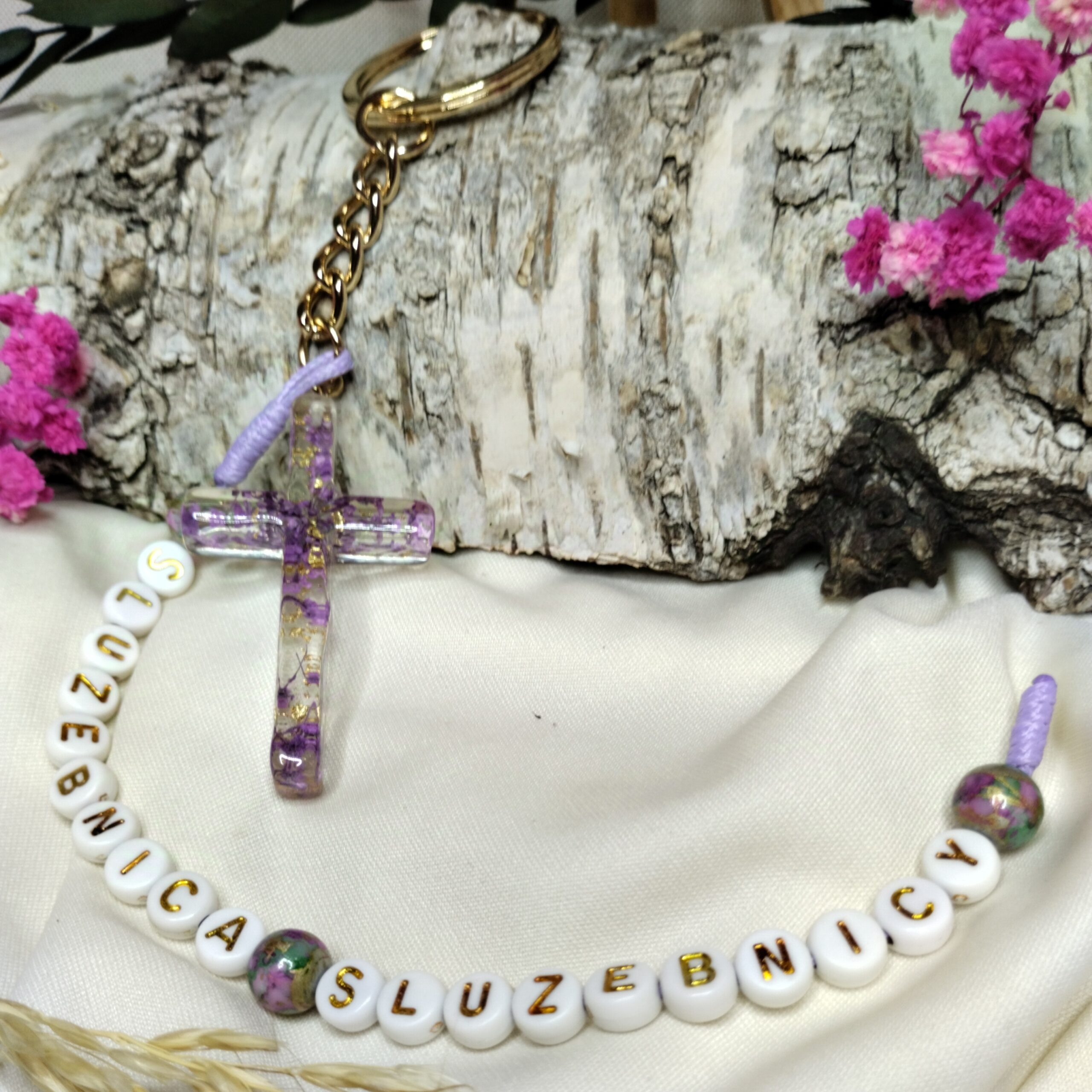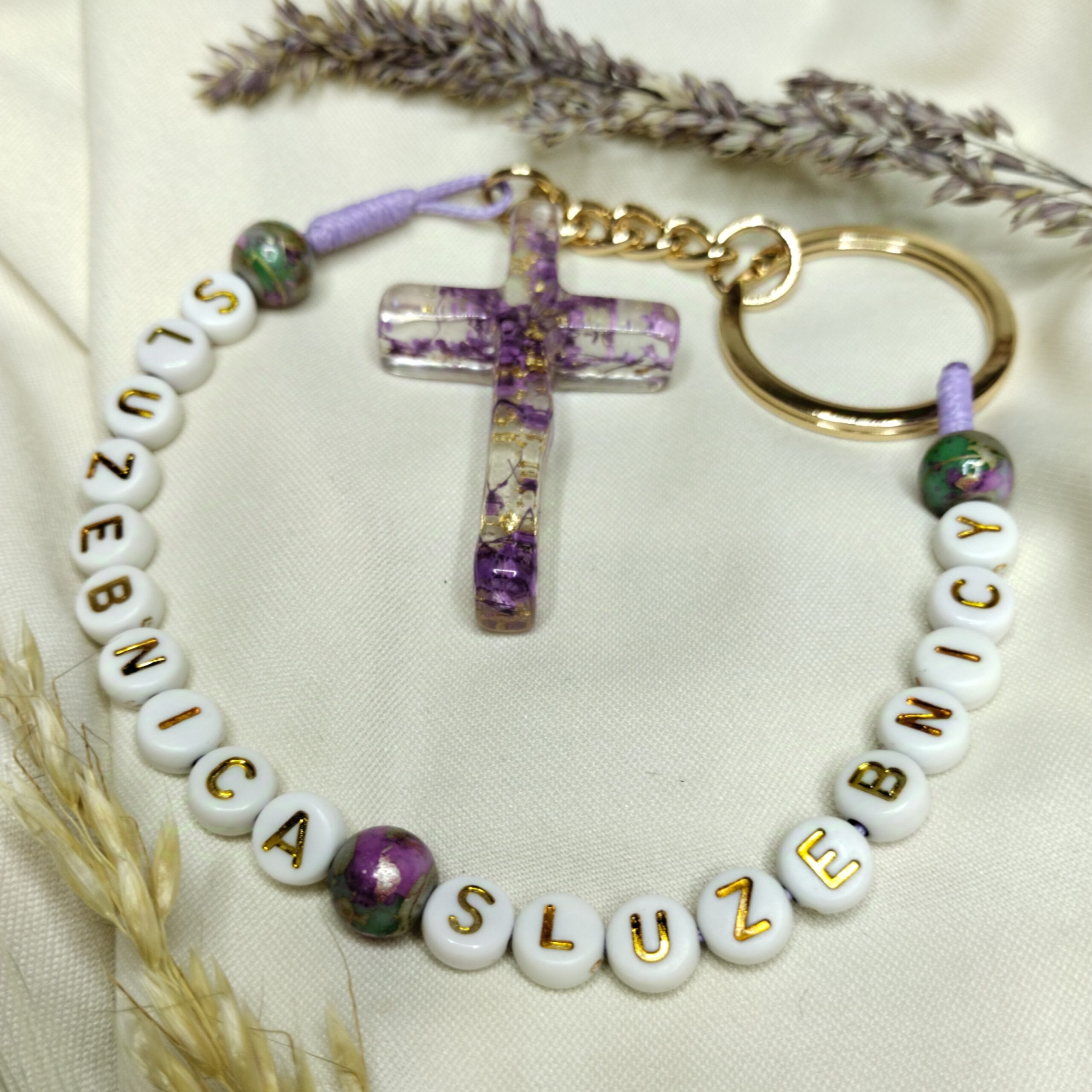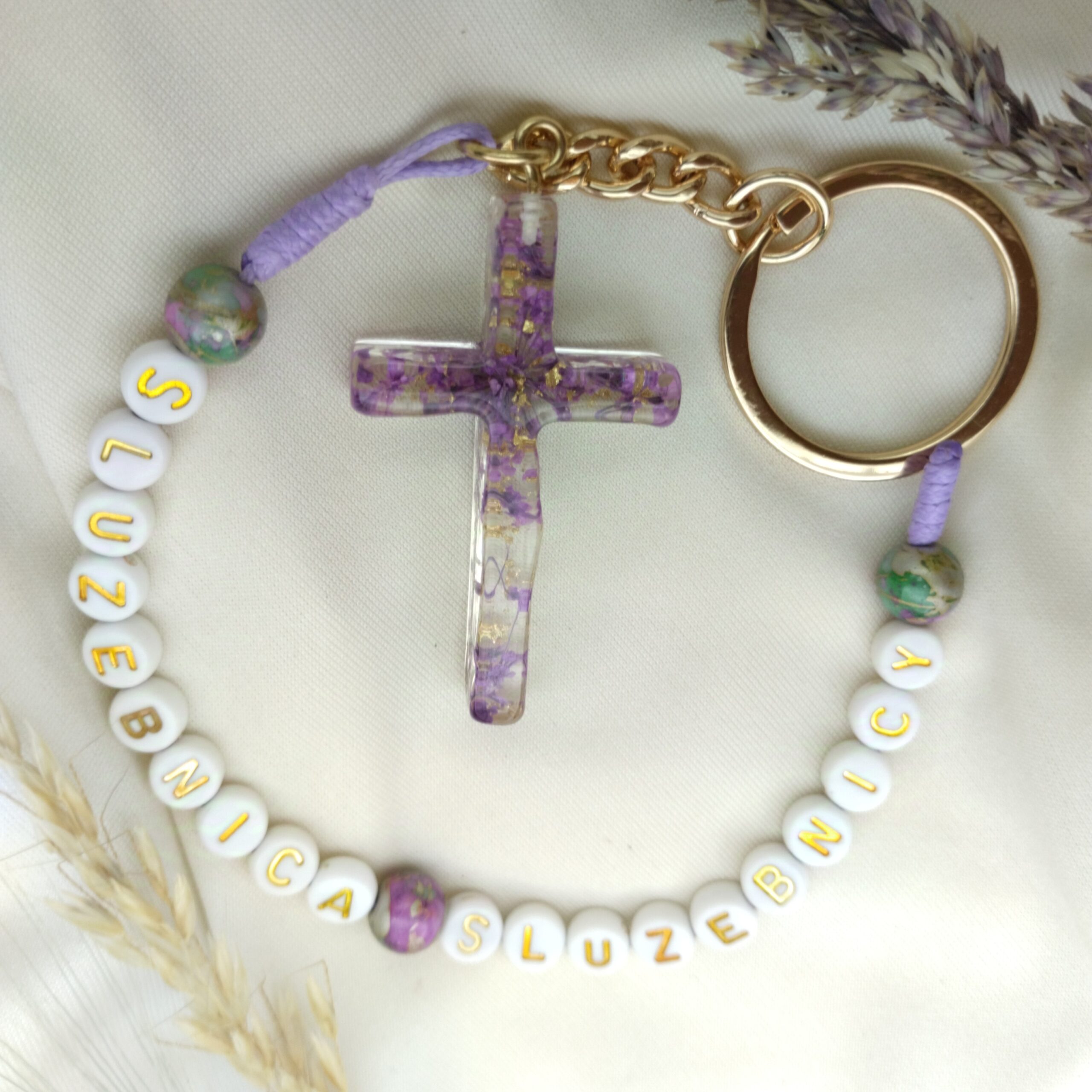 Odkryj „służebnica Służebnicy”, który jest głębokim wyrazem duchowej więzi z Matką Bożą. Krzyż wykonany z żywicy epoksydowej z zatopionymi w środku fioletowymi, suszonymi kwiatami z dodatkiem pozłotka. Niesie on ze sobą symbolikę służby i pokory, które są tak bliskie sercu każdego wierzącego.