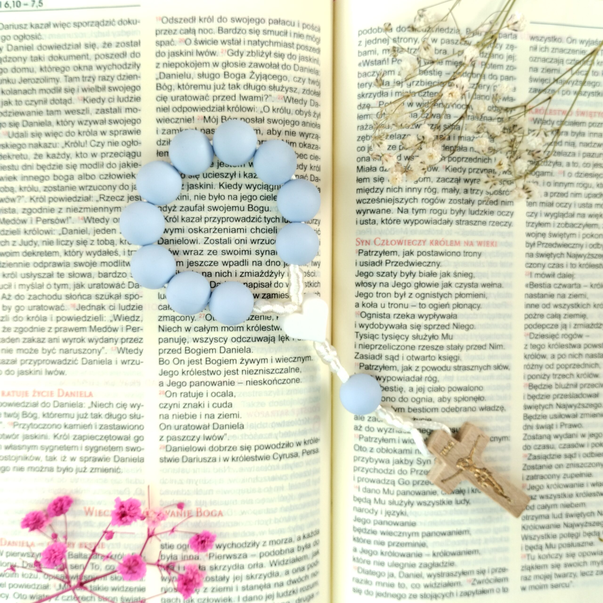 „Józef” została starannie wykonana z najwyższej jakości materiałów. Różowe silikonowe paciorki, wolne od BPA, są nie tylko delikatne w dotyku, ale również bezpieczne. Łącznik w kształcie serca, w pięknym odcieniu bieli, o średnicy 10mm dodaje elegancji i symbolicznego charakteru. Naturalny drewniany krzyż dopełnia całość, podkreślając duchowe znaczenie różańca, a trwały perłowy sznurek zapewnia wytrzymałość i estetykę.