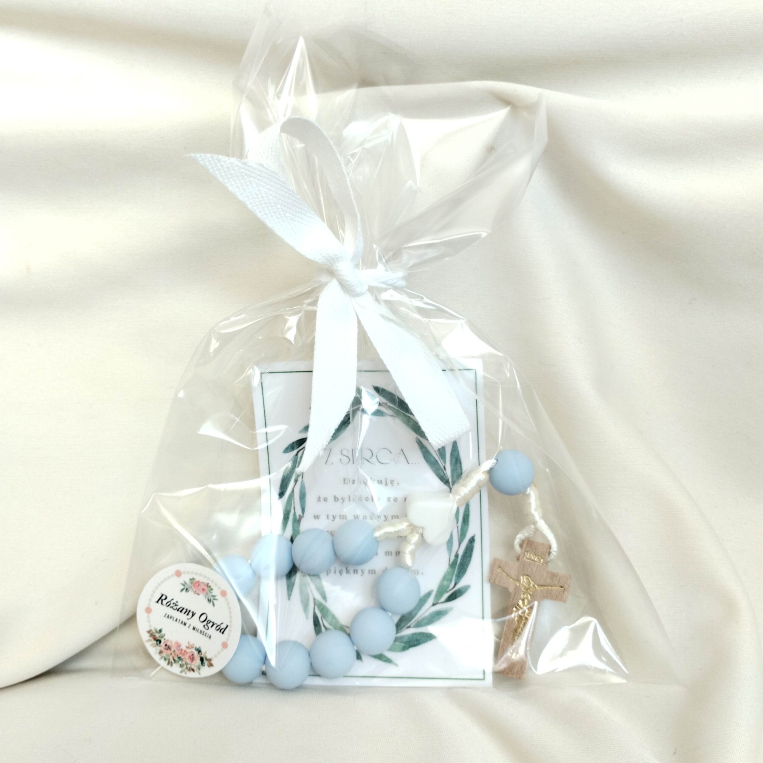 *W galerii produktu można zobaczyć, jak wygląda różaniec z przystrojeniem i dedykacją (dodatkowo płatne).