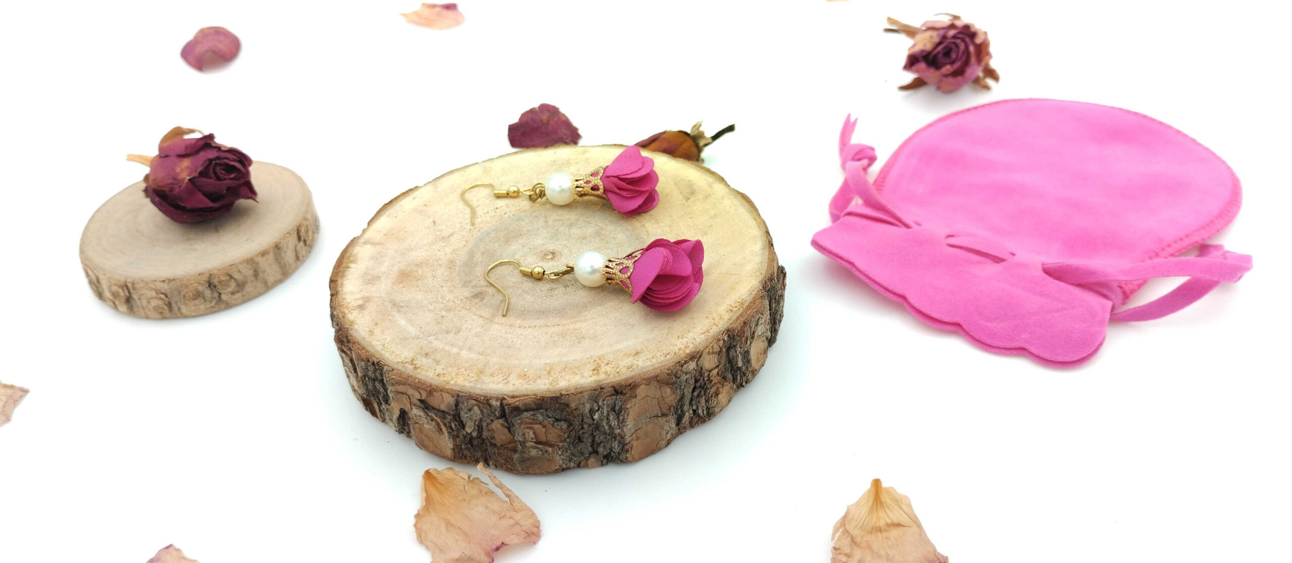 Kolczyki pakowane są w ozdobny woreczek z organzy – idealne na prezent lub jako uroczy dodatek do Twojej osobistej kolekcji.