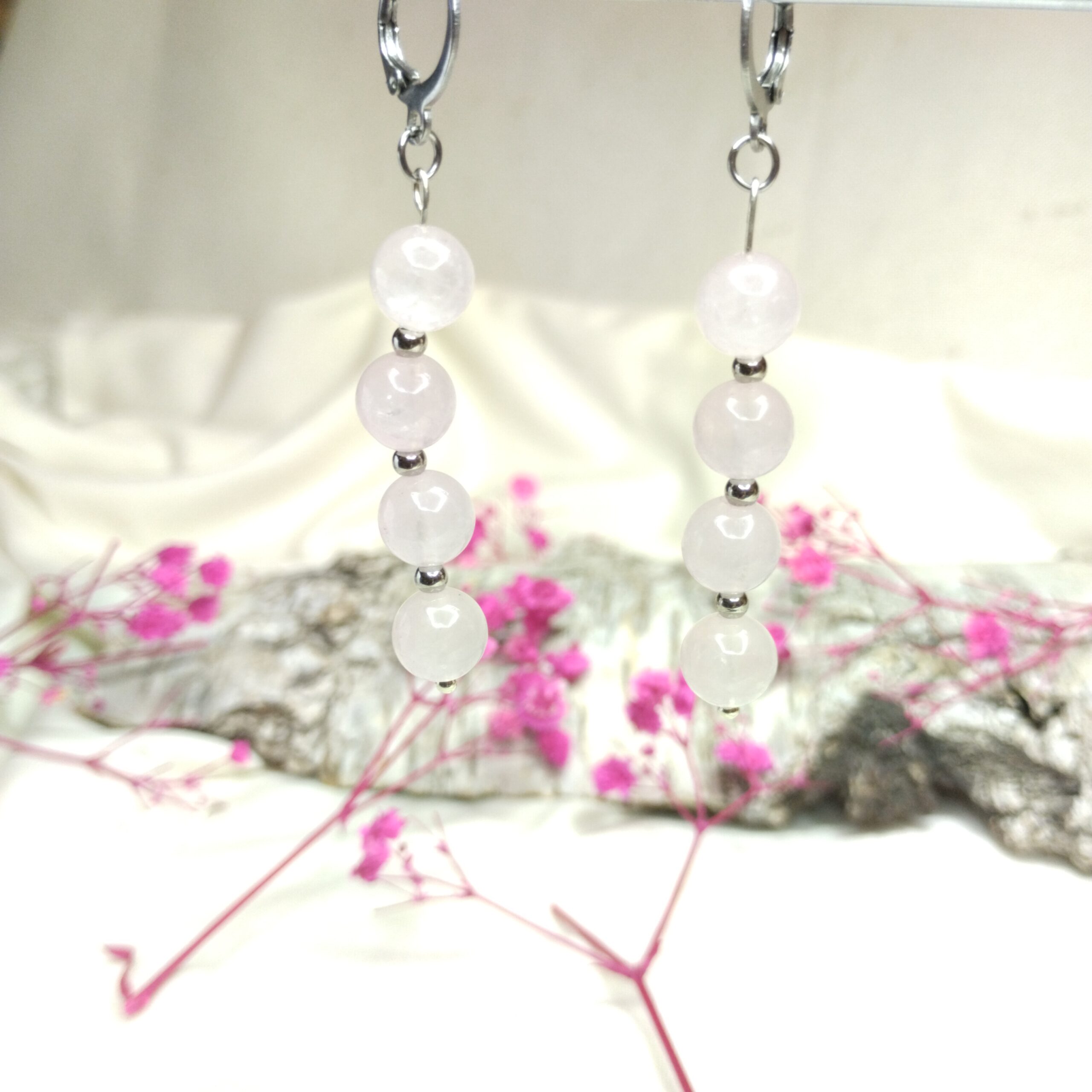 Piękny zestaw biżuterii „Różane muśnięcie serca” wykonana z kamieni naturalnych różowego kwarcu.