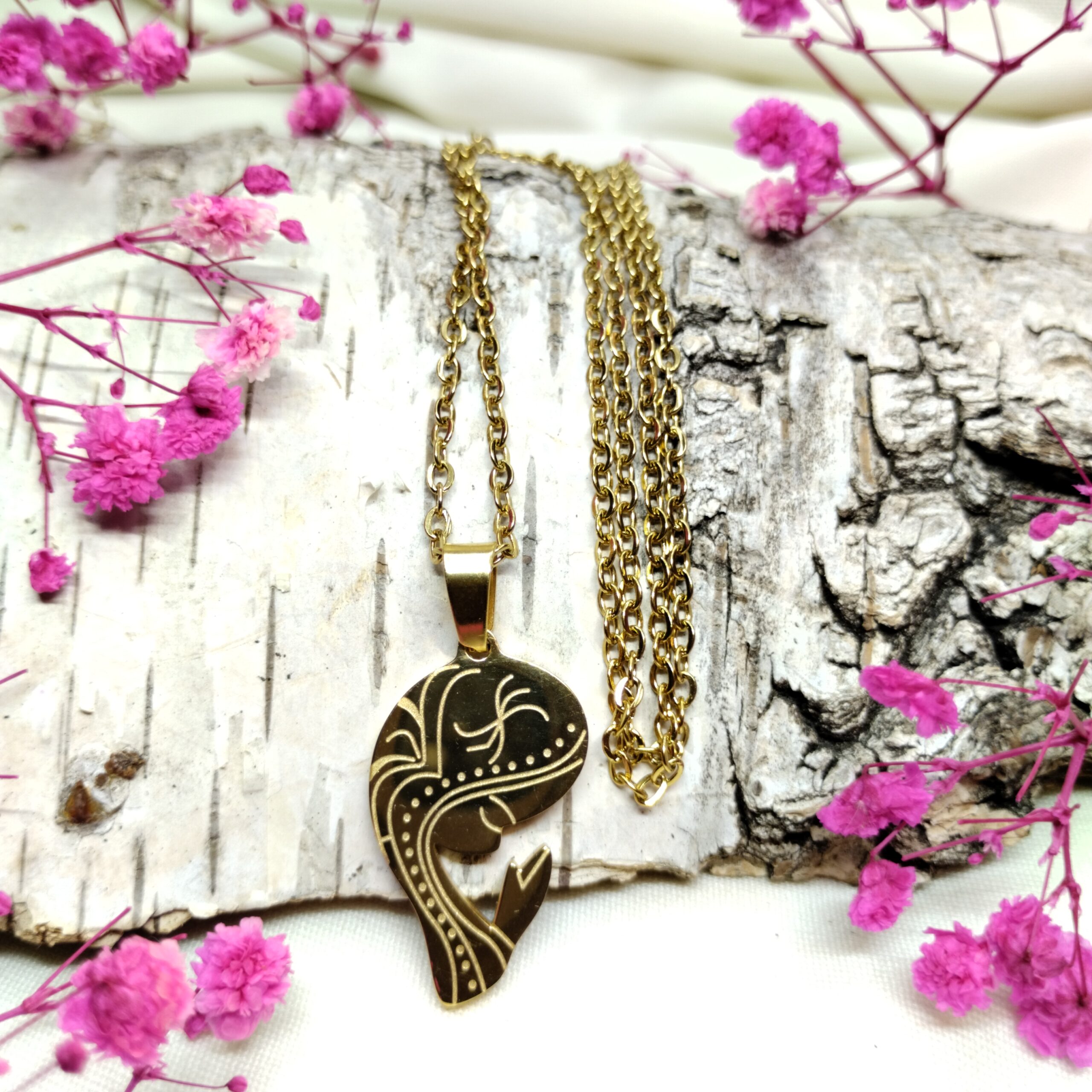 Naszyjnik „Matka Modlitwy” wykonany ze stali nierdzewnej, pozłacanej.