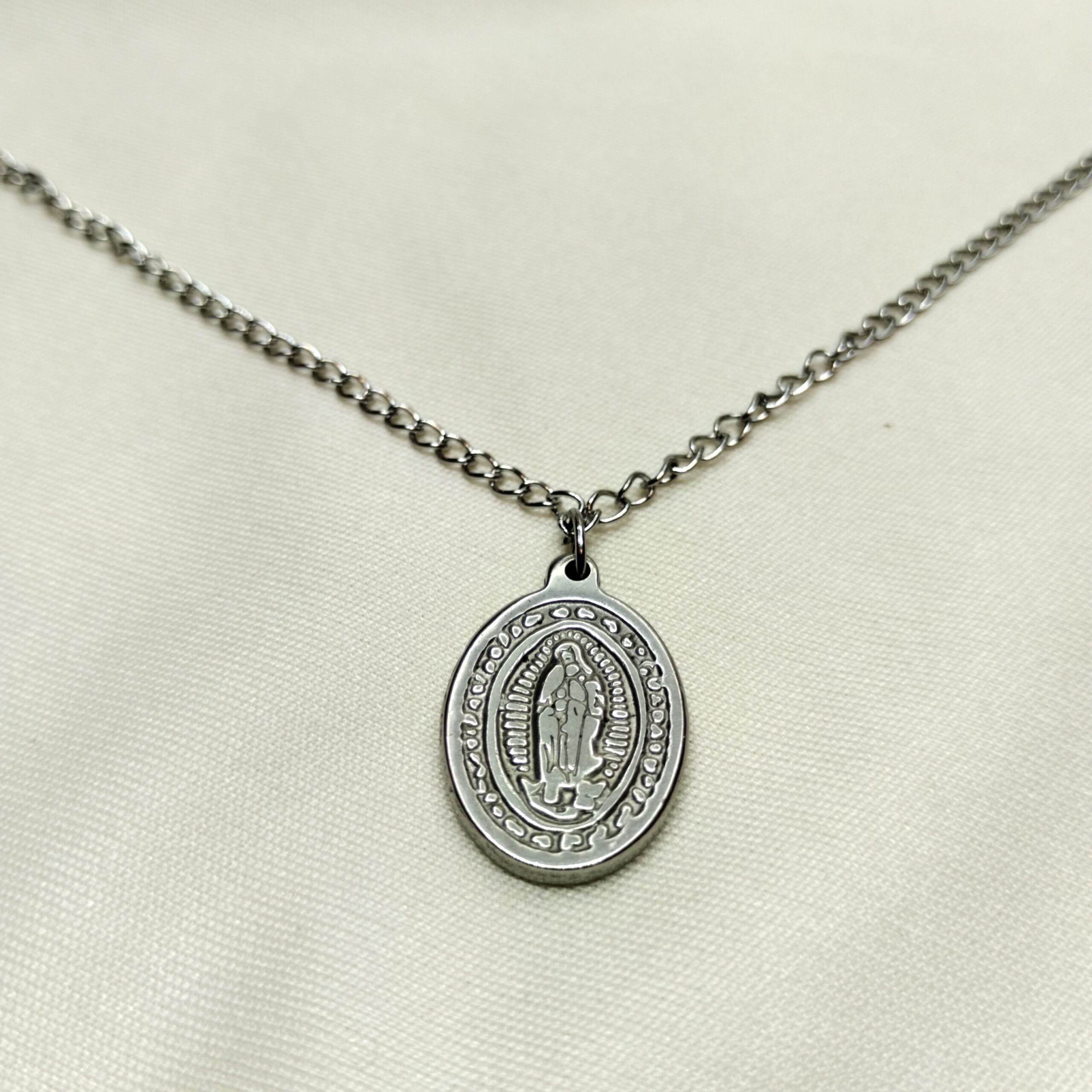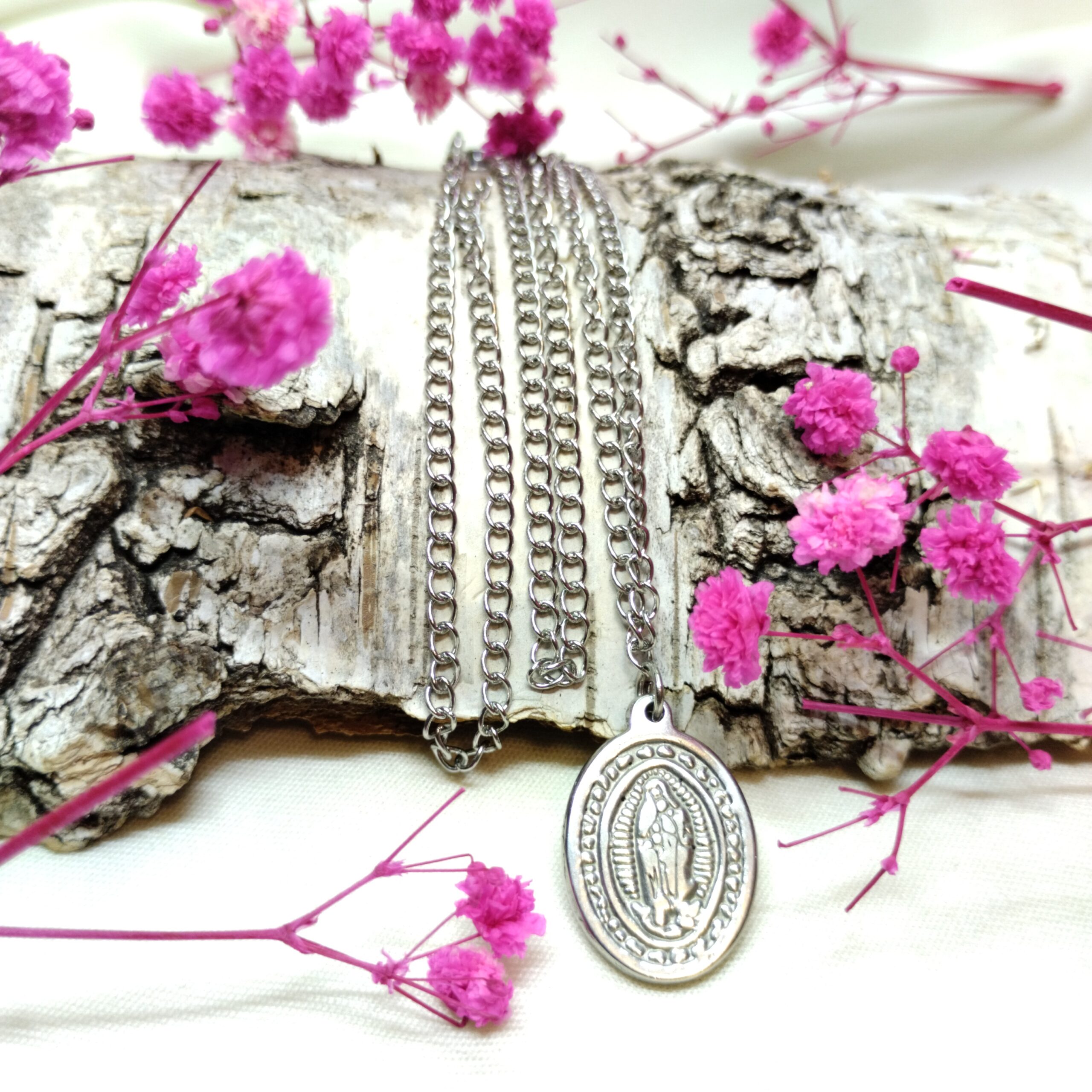 „Królowa Pokoju” to elegancka biżuteria, która łączy w sobie subtelną estetykę z głębokim duchowym przesłaniem. Wykonany ze stali nierdzewnej posrebrzanej, zachwyca swoją trwałością oraz pięknem. W jego centrum znajduje się wizerunek Maryi, Matki Bożej, która jest symbolem pokoju, opieki i matczynej miłości.