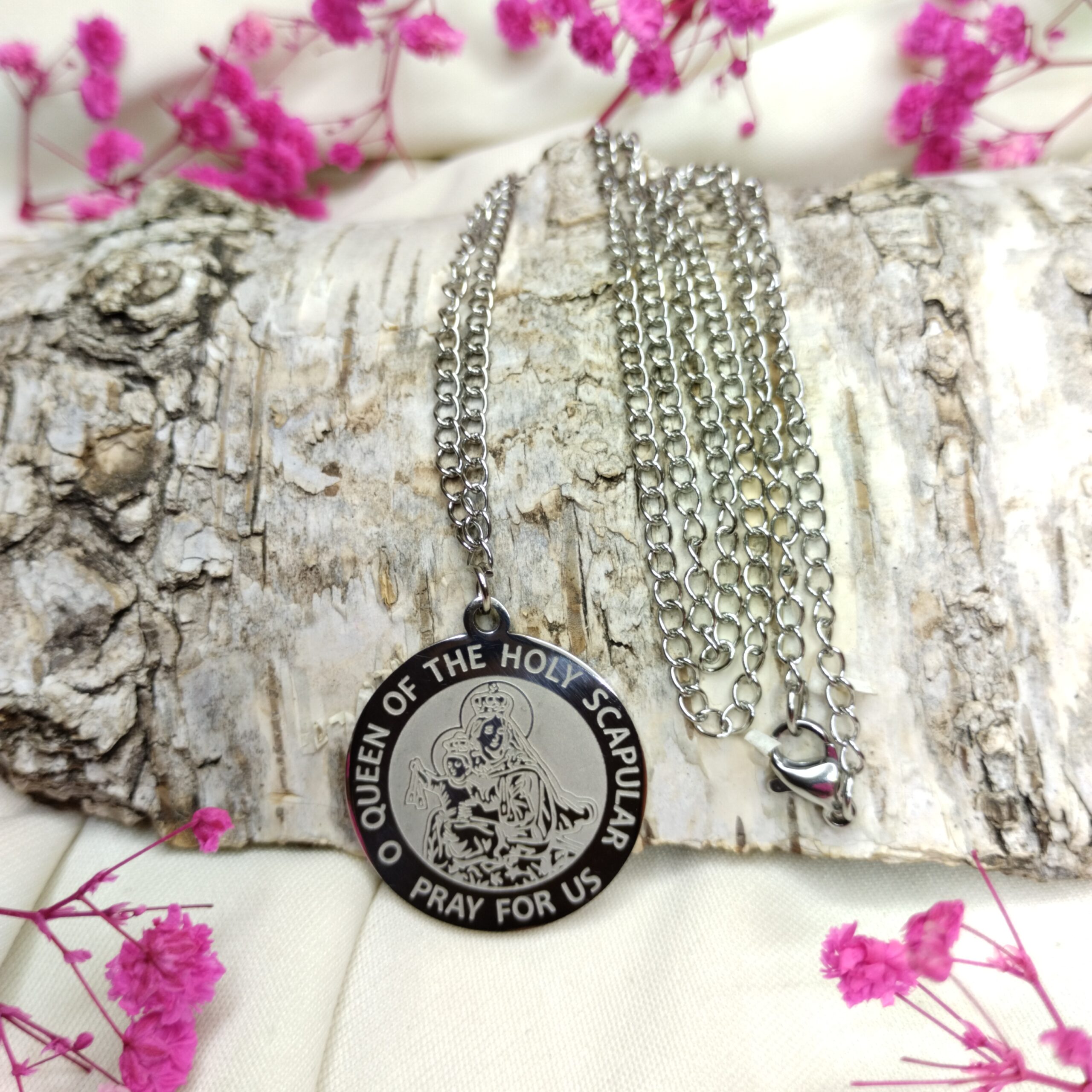 Centralnym punktem jest medalion z wizerunkiem Świętej Barbary – patronki górników, artylerzystów, marynarzy, architektów, kowali, kamieniarzy, dzwonników, kucharzy, a także osób uwięzionych. Jej postać symbolizuje odwagę, wiarę i wytrwałość w obliczu trudności, co czyni ten naszyjnik idealnym prezentem dla każdego, kto ceni sobie duchowe wartości i szuka codziennej inspiracji oraz ochrony.