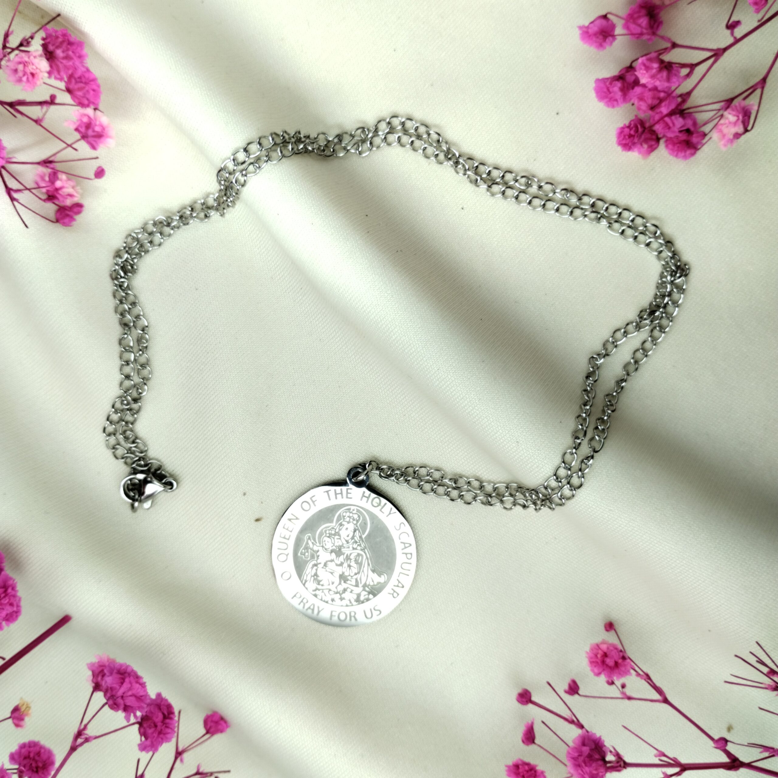 Naszyjnik „Święta Barbara” wykonany ze stali nierdzewnej, posrebrzanej.