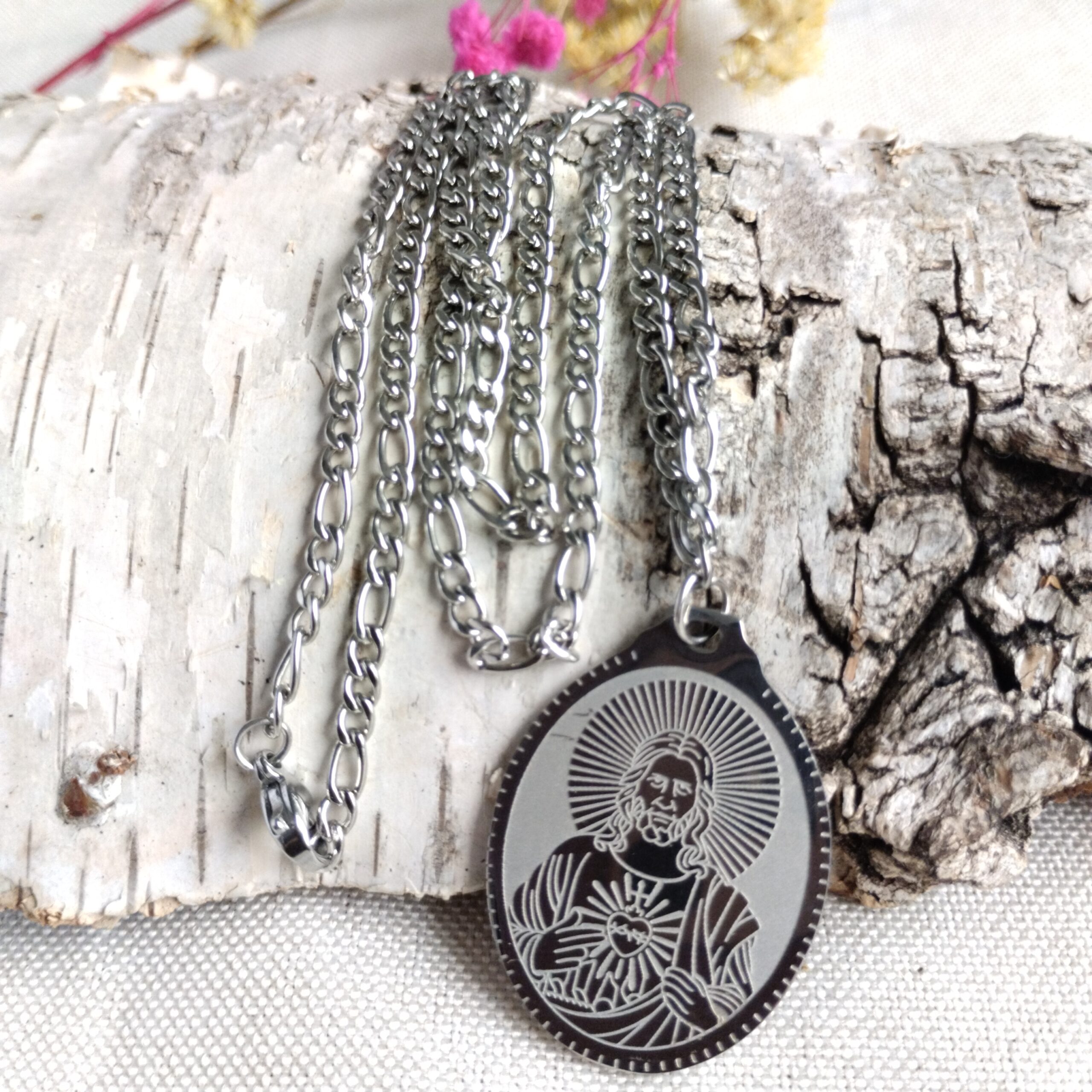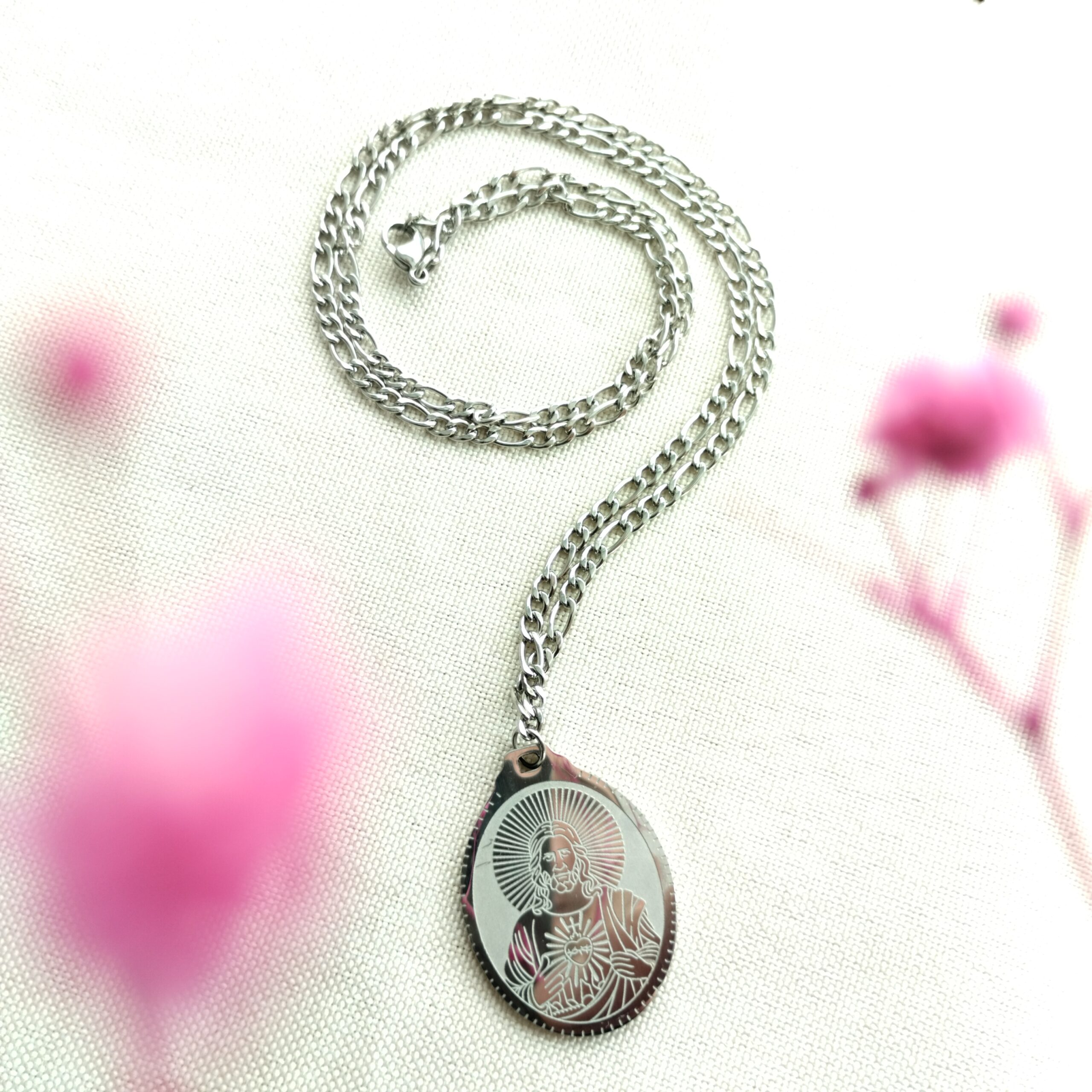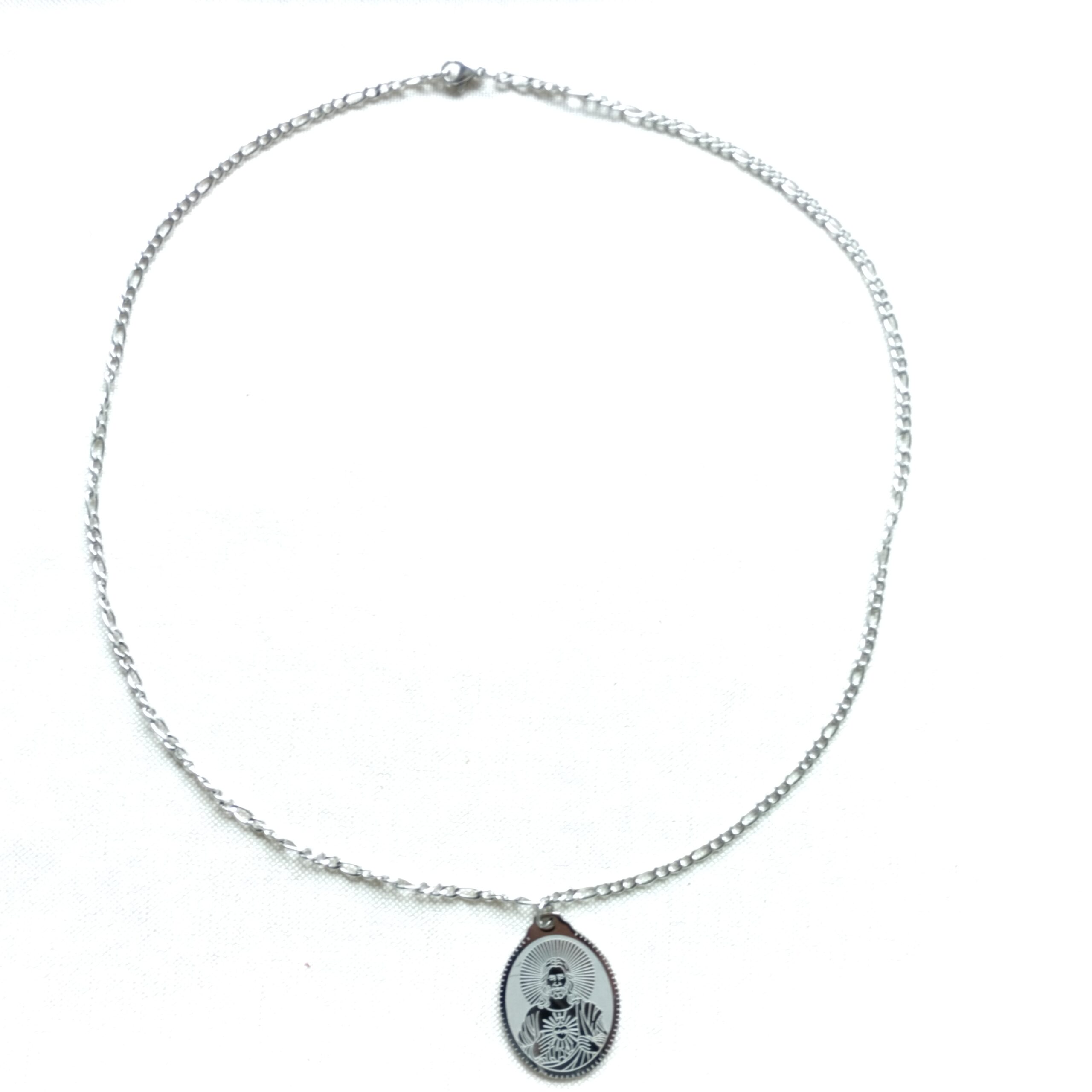 Srebrny naszyjnik z Najświętszym Sercem Pana Jezusa wykonany ze stali nierdzewnej, posrebrzanej.