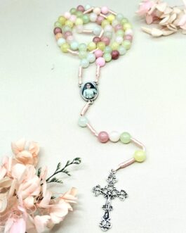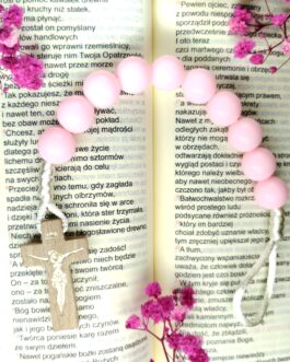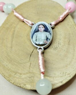 Różaniec 8mm „Matka Boża i Pastuszkowie z Fatimy” z kamienia naturalnego.