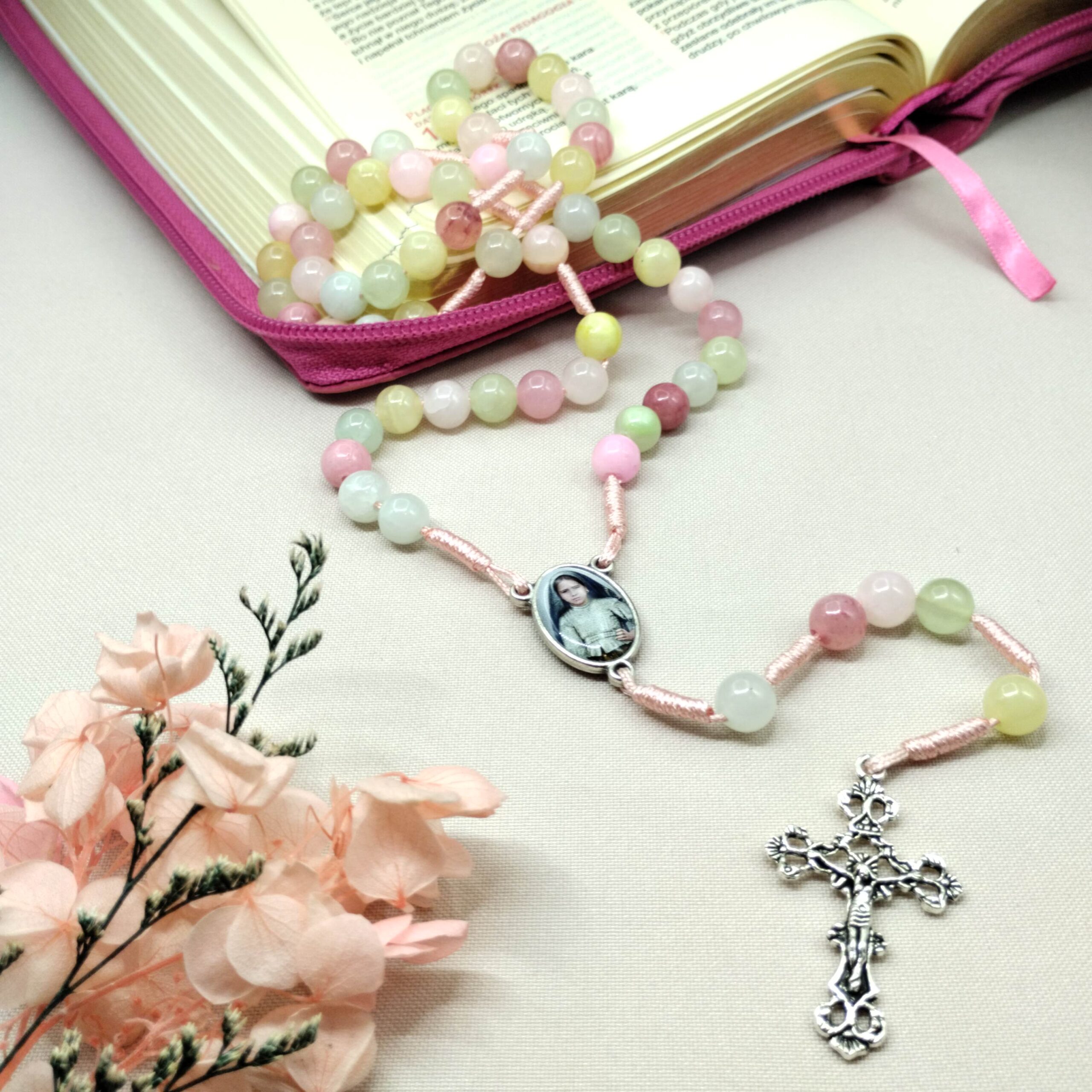 Różaniec 8mm „Pastelowy Ogród” z Święta Hiacyntą Marto
