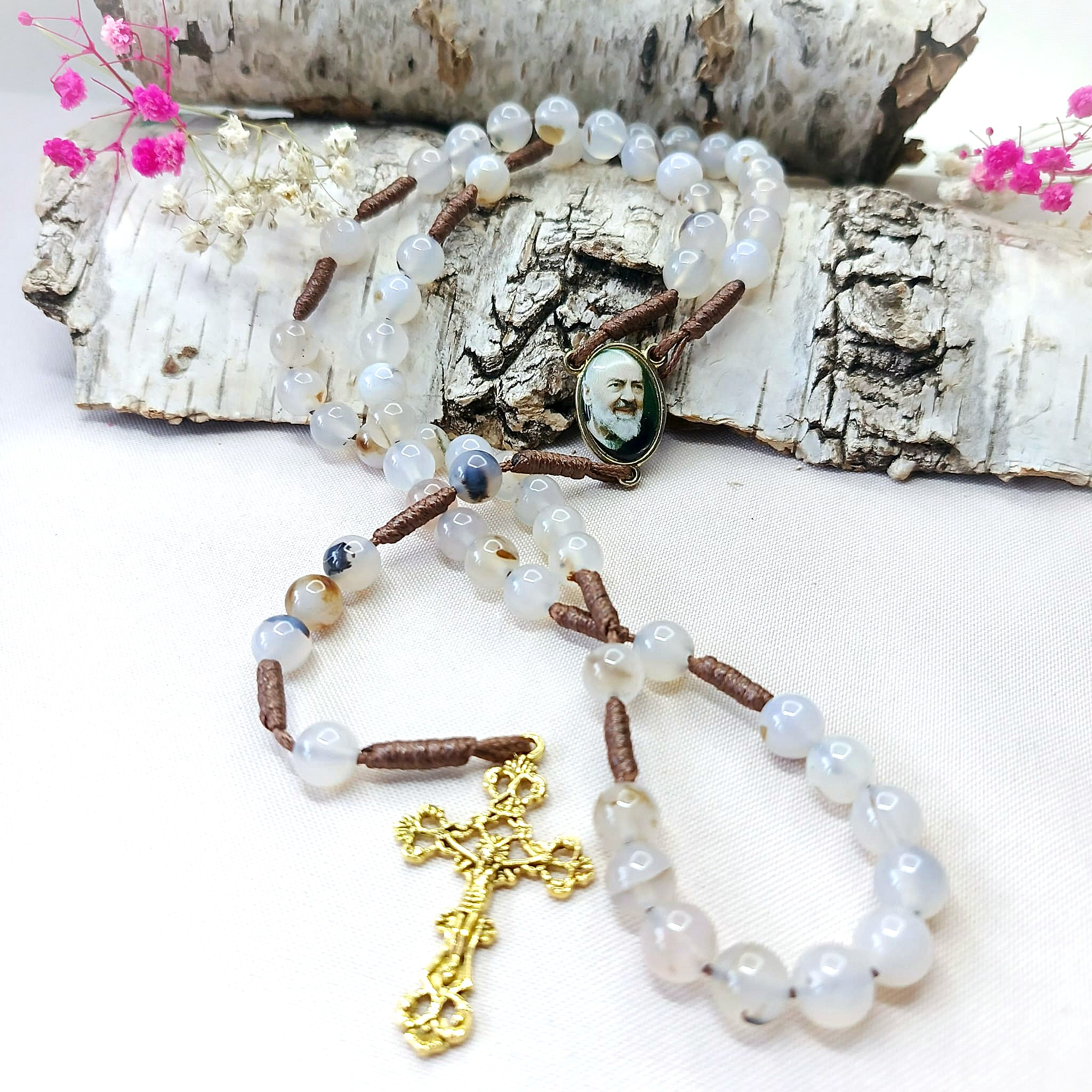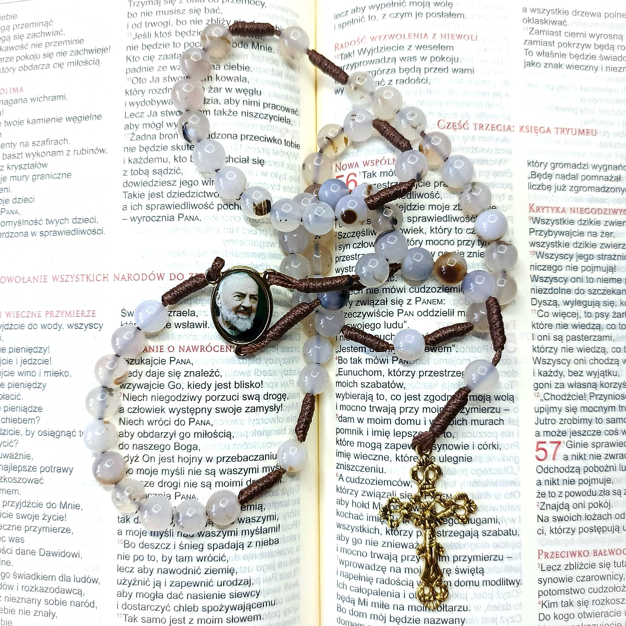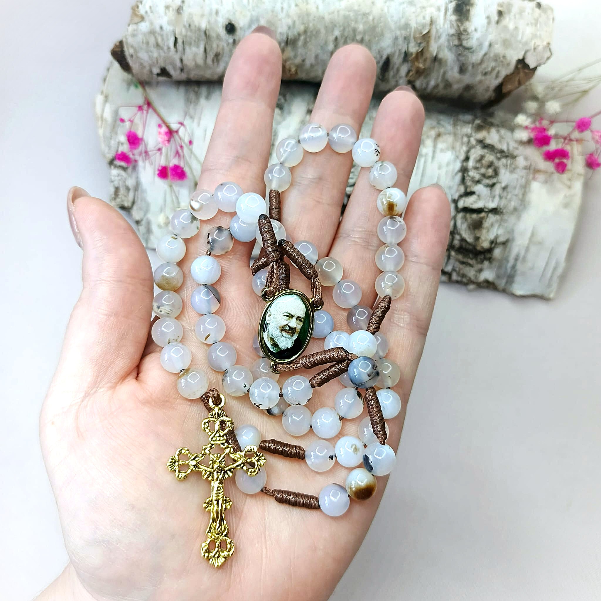 Wyjątkowy przedmiot, który łączy głęboką duchowość z estetyką naturalnych kamieni. Inspirowany życiem i modlitwą św. Ojca Pio, przypomina o sile pokory, ufności i oddaniu się Bożej Opatrzności.
