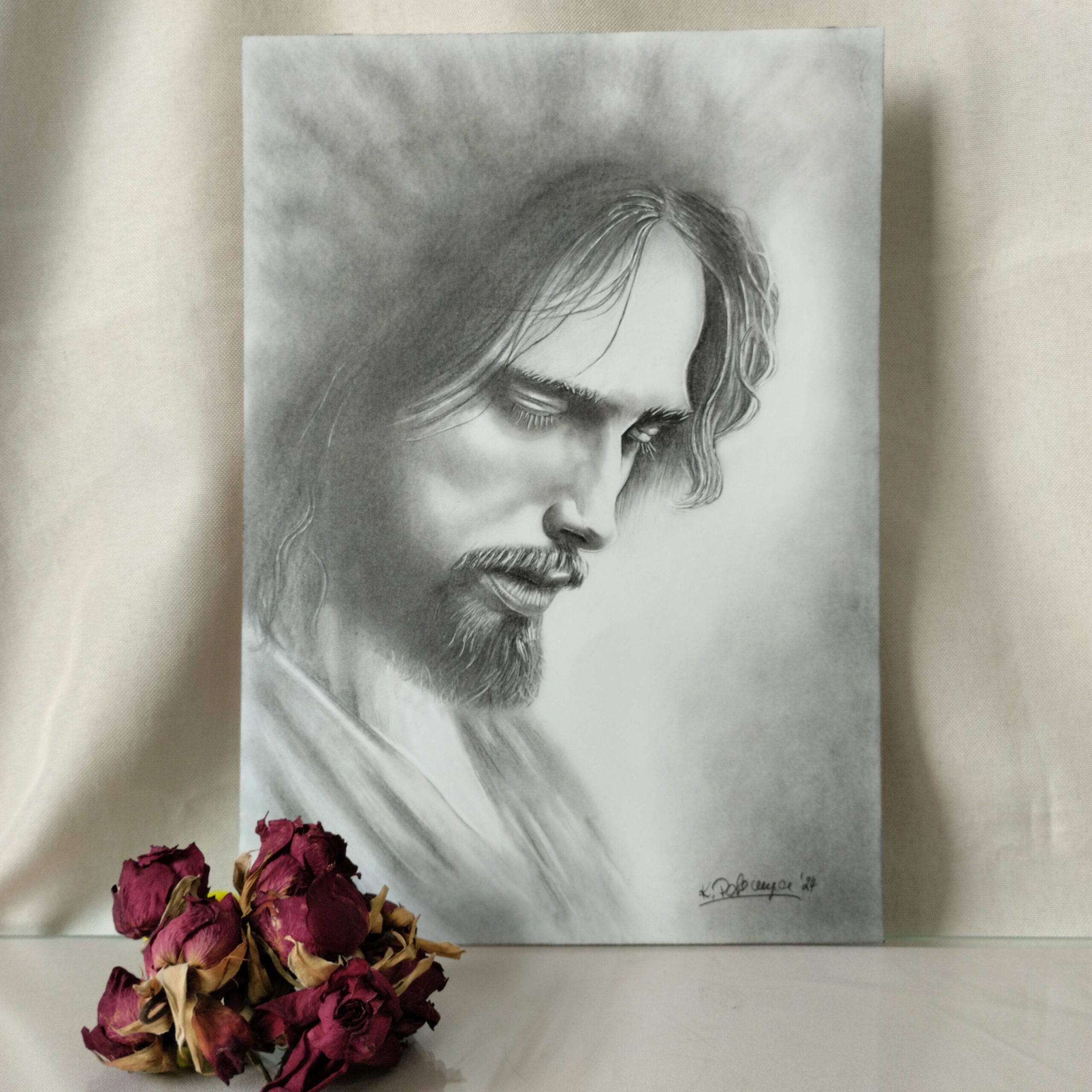 Ręcznie narysowany obraz Jezusa Chrystusa (format A4).